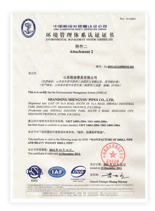 環(huán)境管理體系認(rèn)證證書
